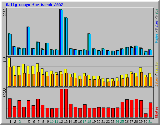 Day | Hits | Files | Pages | Visits | Sites | KBytes | ||||||